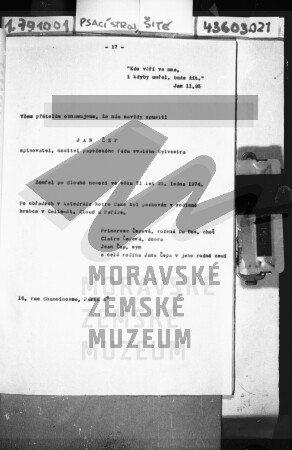 Český překlad a opis smutečního oznámení Jana Čepa.